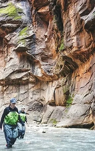 Wade confidently with dry bibs, canyoneering boots, neoprene socks, and walking sticks—ready for slick rocks, cold water, and unforgettable moments.